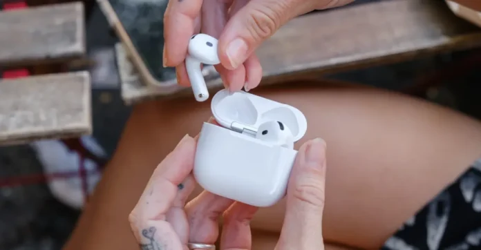 صورة عملية لسماعات الأذن اللاسلكية AirPods 4 من Apple.