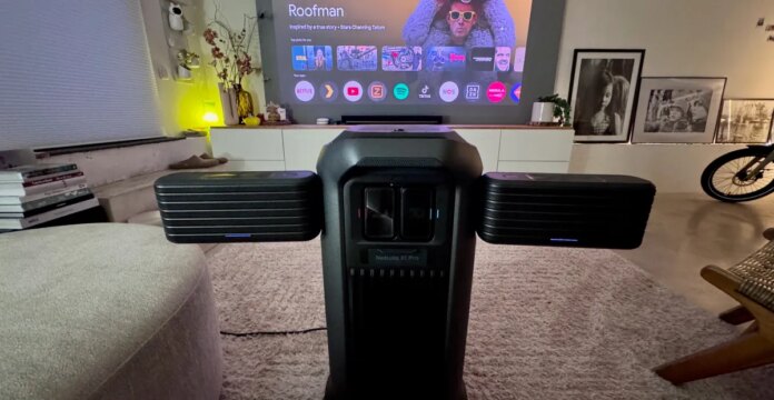 يوجد في قلب هذا النظام نفس جهاز العرض الذي يعمل بتقنية الليزر الثلاثي والتبريد السائل ويصحح كل شيء تلقائيًا لقد قمت بمراجعة الصيف الماضي. إنه جهاز عرض هادئ بشكل لا يصدق بالنسبة لجهاز عرض بقوة 3500 لومن ANSI والذي يدعي أنه جهاز العرض المحمول الأكثر سطوعًا والأكثر حيوية في السوق. وهو الآن أيضًا الأعلى صوتًا، مع إضافة 400 واط من الصوت إلى Nebula X1 Pro الجديد.